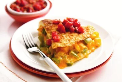 Tophalf of omelet with pepper mixture and cheese; fold in half. Cook, covered, 3 min. or until cheese is melted. Serve topped with salsa.